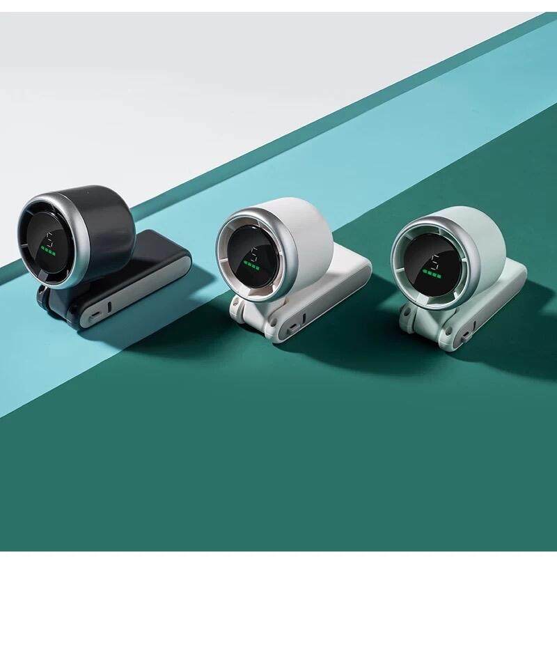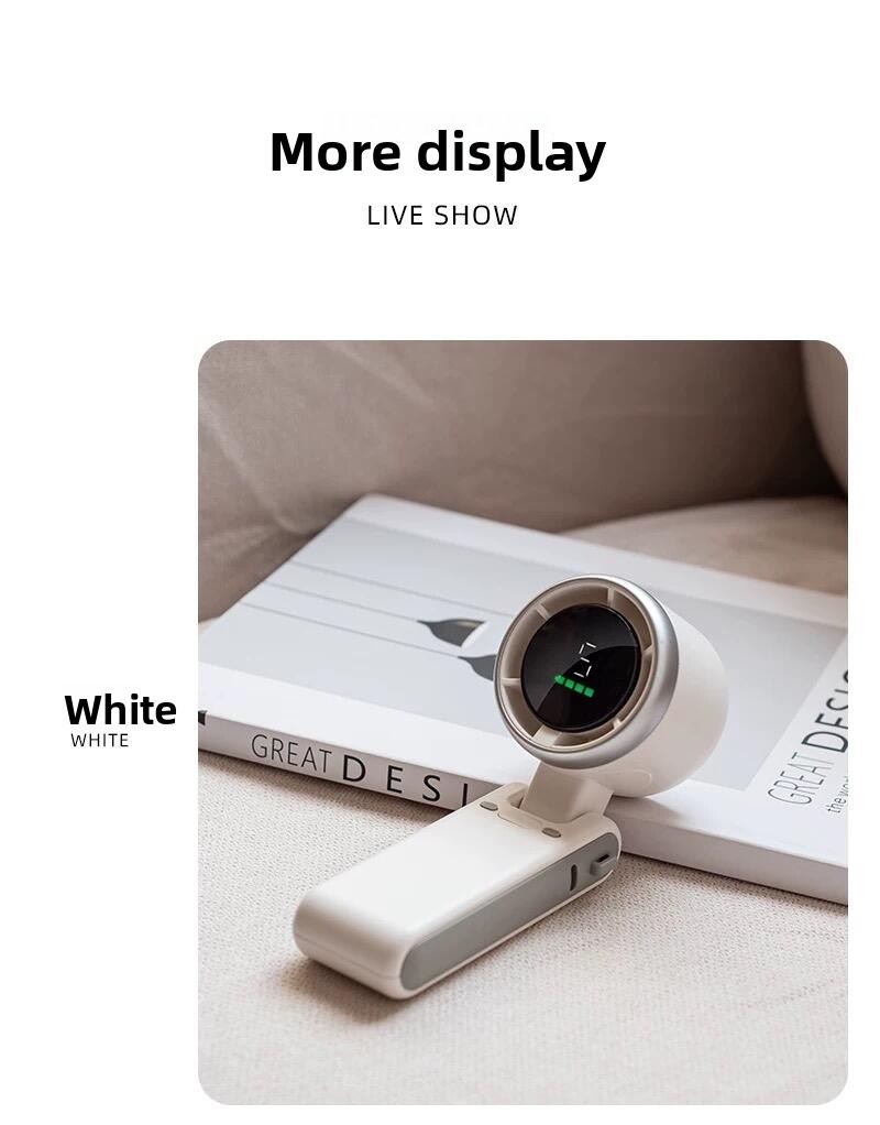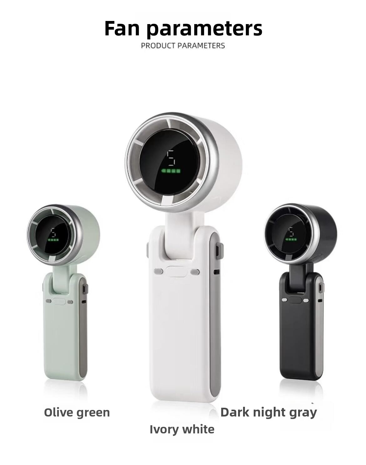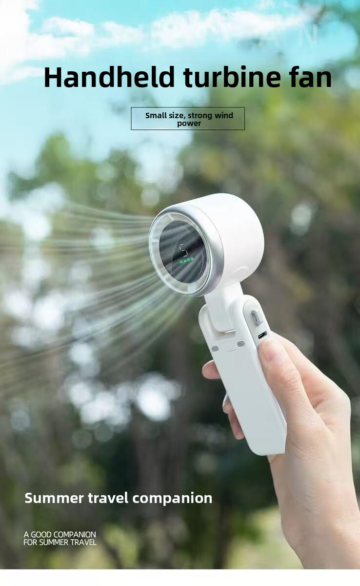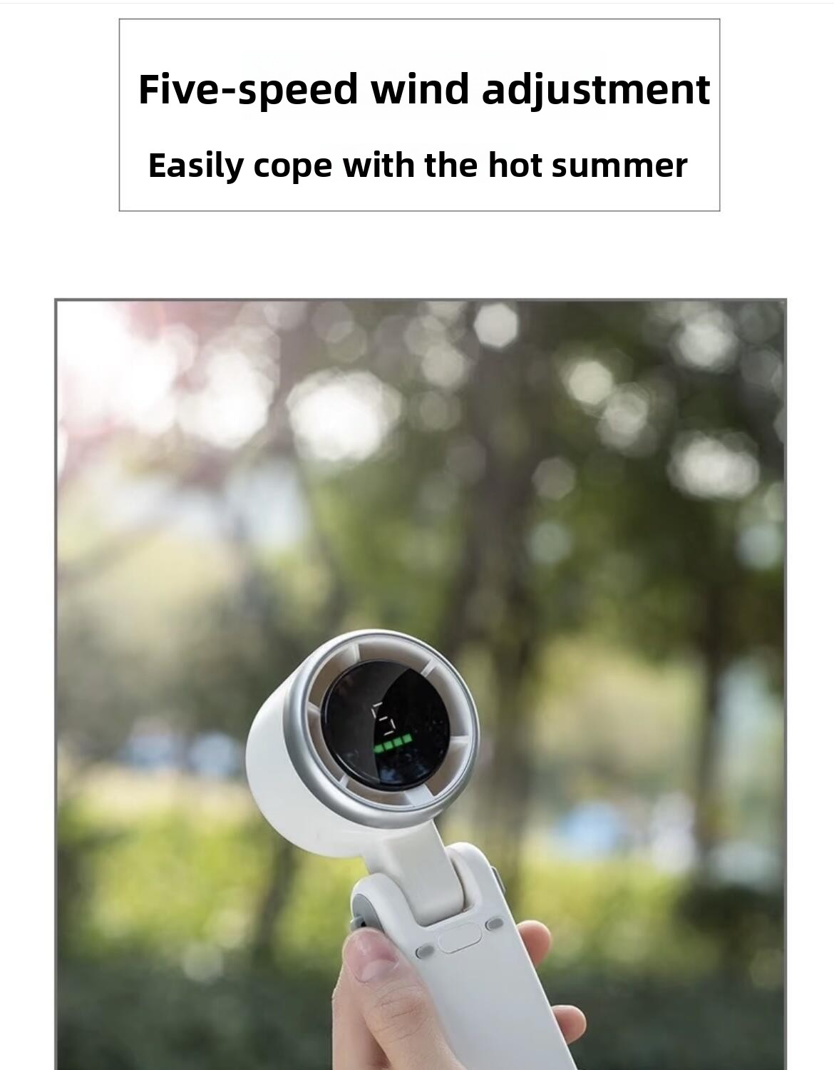 Portable Design: Compact handheld fan with foldable neck strap for easy carrying and hands-free use.